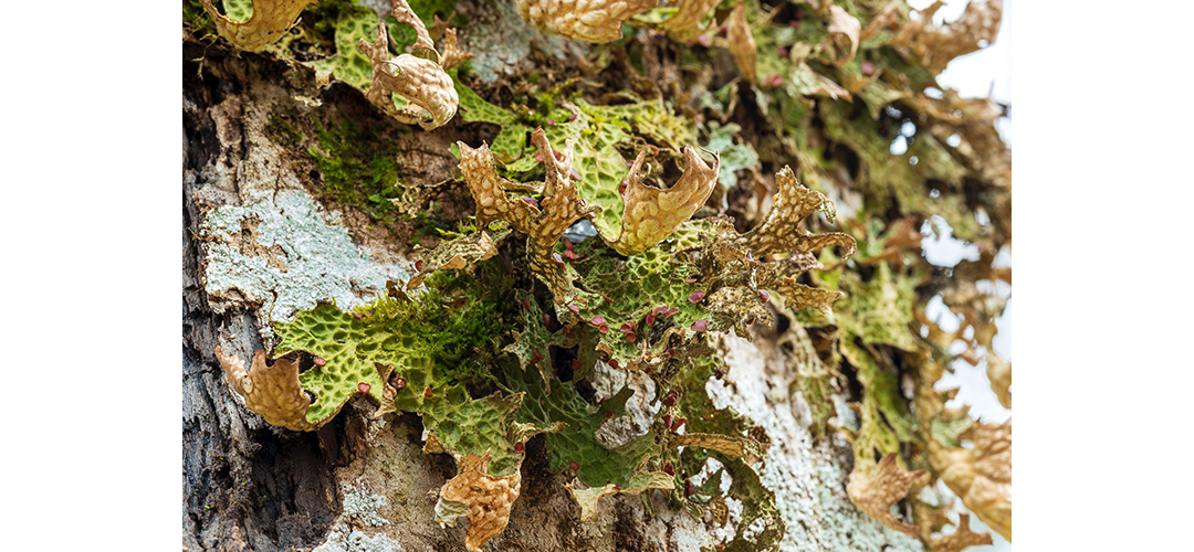 Die Lungenflechte (Lobaria pulmonaria) wurde schon im Mittelalter als Mittel gegen Husten geschätzt. Da sie auf der Rinde alter Bäume in naturnahen Wäldern wächst, kommt sie im Schweizer Mittelland so gut wie gar nicht mehr vor.“